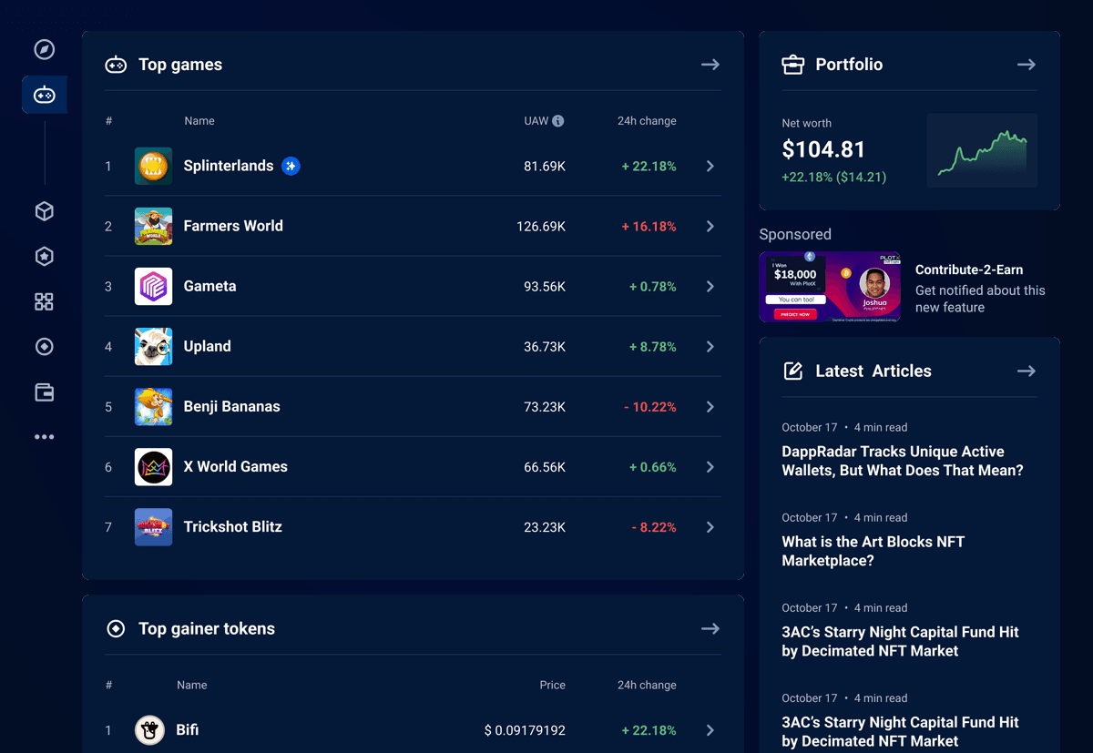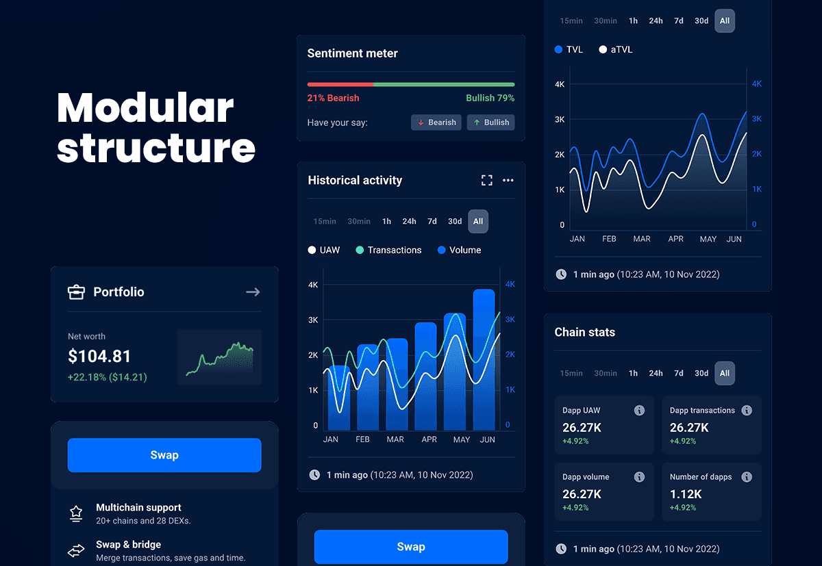 Joined DappRadar as the first designer to build product design from zero. The platform was early-stage, with no structure, no visuals, and no defined product experience.